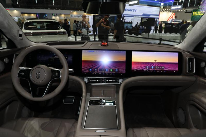 内饰方面,新车采用三块贯穿屏,包括12.3英寸的液晶仪表屏+15.6英寸中控大屏+16英寸副驾娱乐屏,并配备HarmonyOS4智能座舱。